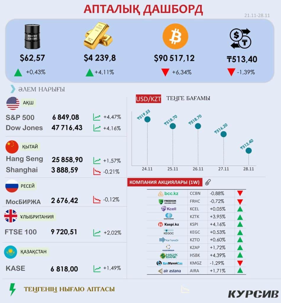 Күздің соңғы аптасы: S&P индексі өсіп, теңге айтарлықтай нығайды