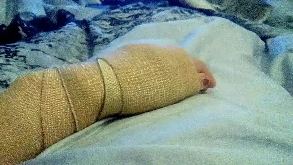 «Бес операция, үздіксіз ауырсыну және қазір созылмалы остеомиелит. Наристе бірнеше айға созылған ауыр ем қабылдады. Әр процедура оған өте қиынға соқты. Әсіресе оның диагнозын ескерсек. Ол адамдардан қорқатын болды. Жанасудан қорықты. Әлі күнге дейін тыныштала алмай жүр», – деді анасы.