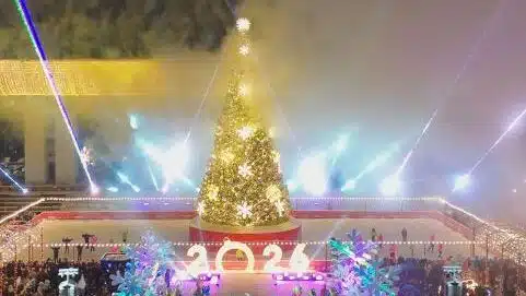 18 желтоқсанда Алматы қаласының барлық сегіз ауданында жаңа жылдық шыршалардың шамы бір мезетте жағылды. Негізгі мерекелік іс-шара Абай алаңында, Республика сарайының алдында өтті. Бұл жерде биіктігі 22 метр болатын қаланың бас шыршасы орнатылды.