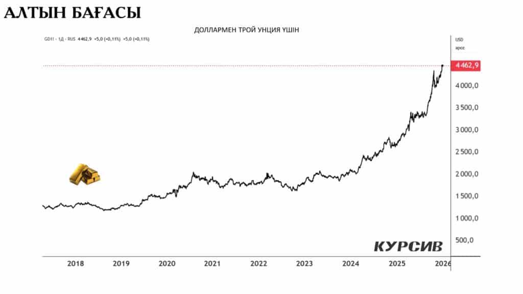 Осының аясында алтын тарихта алғаш рет унциясы 4400 доллардан жоғары көтеріліп, абсолют рекорд орнатты. Бұл раллиге геосаяси тәуекелдердің күшеюі де «үлес» қосты: