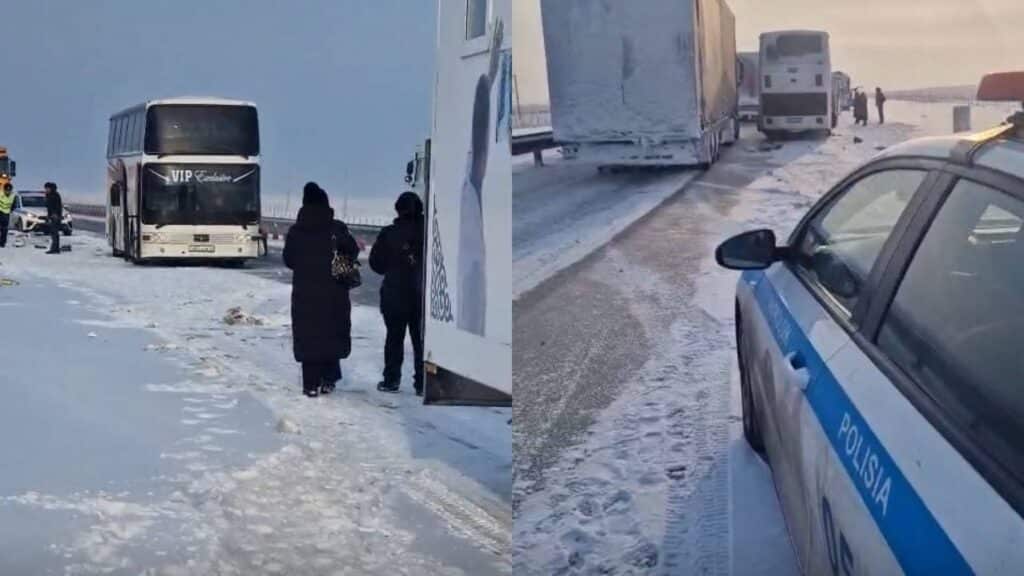 Былтыр Ақмола облысында автобус бұзылып, 65 шетел азаматы қар құрсауында қалған еді.
