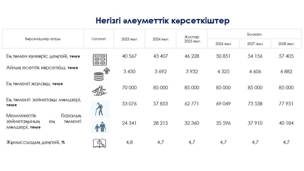 Биыл әлеуметтік салаға 10,4 трлн теңге бөлінген. 2026 жылы 10,8 трлн теңге бөлу жоспарланған. Ал 2027-2028 жылдары 10,8 трлн және 11,4 трлн теңге бөлінбек.