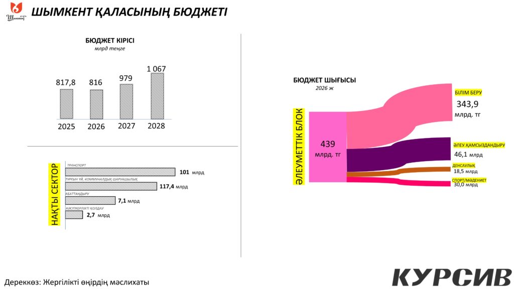 Шымкентте әлеуметтік блок 439 млрд теңге. Бір қарағанда Астанадан да жоғары. Алайда құрылымына үңілсек, білім беру – 343,9 млрд теңге, ал денсаулық сақтау небәрі 18,5 млрд теңге. Бұл – Шымкенттің демографиялық ерекшелігін, жас тұрғындар үлесінің көптігін көрсетсе де, медициналық инфрақұрылымға тәуекелді арттырады.