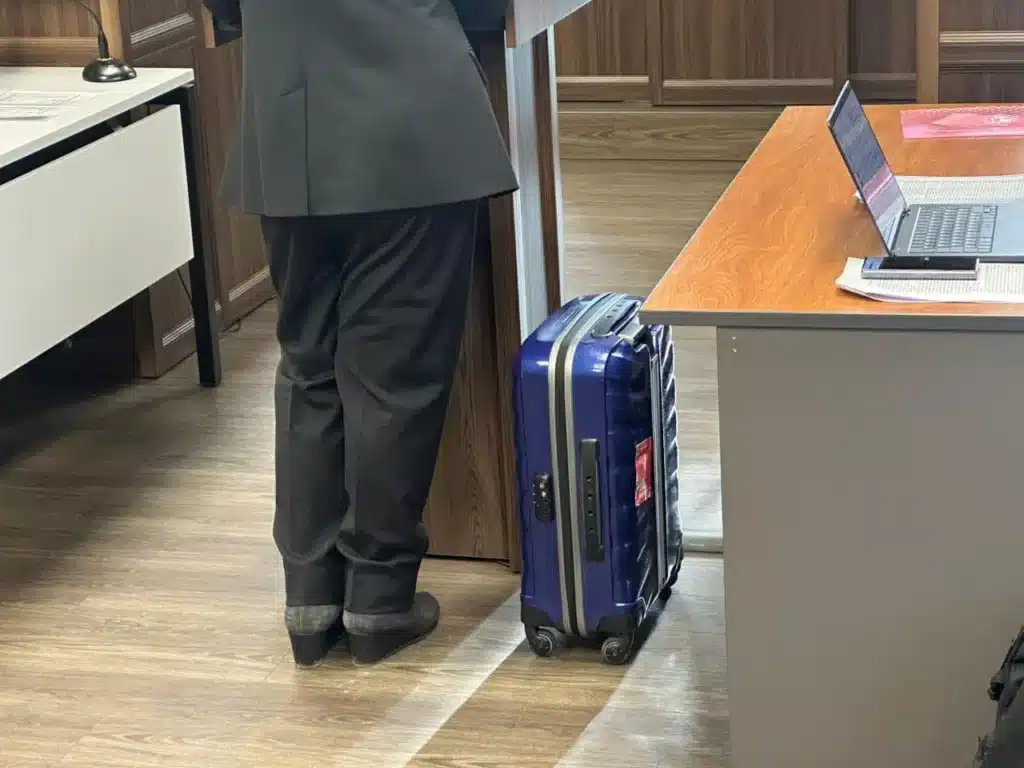 «Нұрлыбекова сейфтен жылжымайтын мүлікке қатысты 16-17 құжат алып шықты. (…) Құжаттарды салатын нәрсе әкелуімді сұрады. Матадан тігілген сөмке әкелдім. Нұрлыбекова «коттедж 2,5 млн доллар, екі пәтер миллион доллар тұрады. Құжаттарын таксимен алып кеткелі жатырсың ба?» деп, шабадан әкелуімді сұрады. Басқа бөлмеден көк шабаданды алып, соның ішіне құжаттарды салдық», – дейді сотталушы.