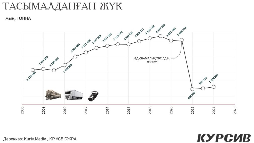 2024 жылы жүк тасымалы 1,078 млрд тоннаға дейін өсіп, бір жылда 10% қосымша өсім көрсетті. Бұл – соңғы жылдардағы ең жоғары қарқын. Мұндай серпінге: