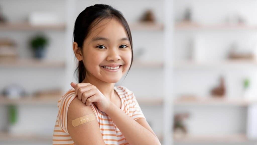 Вакцина салдырған оқушы қыз / фото: shutterstock