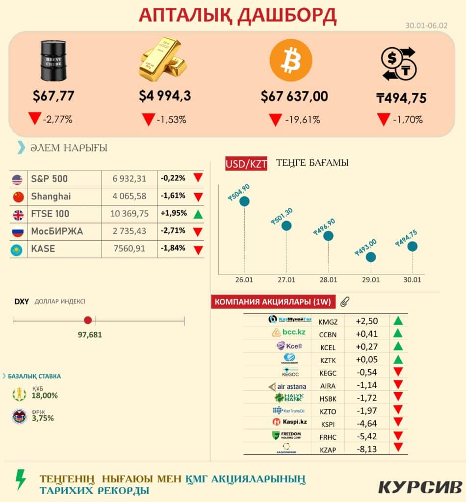 Апта қорытындысы: биткоинның құлдырауы мен теңгенің нығаюы