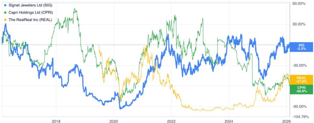 Әшекей бұйымдардың орнына Signet Jewelers Limited (SIG) акциясын сыйлауға болады. Бұл компания – жаппай баға сегментінде (Kay, Zales, Jared брендтері) жұмыс істейтін АҚШ-тағы зергерлік бұйымдардың ең ірі сатушысы. Компания премиум санатындағы нарыққа емес, сауда көбіне нақты күндер мен оқиғаларға орай жасалатын кең аудиторияға бағытталған.
