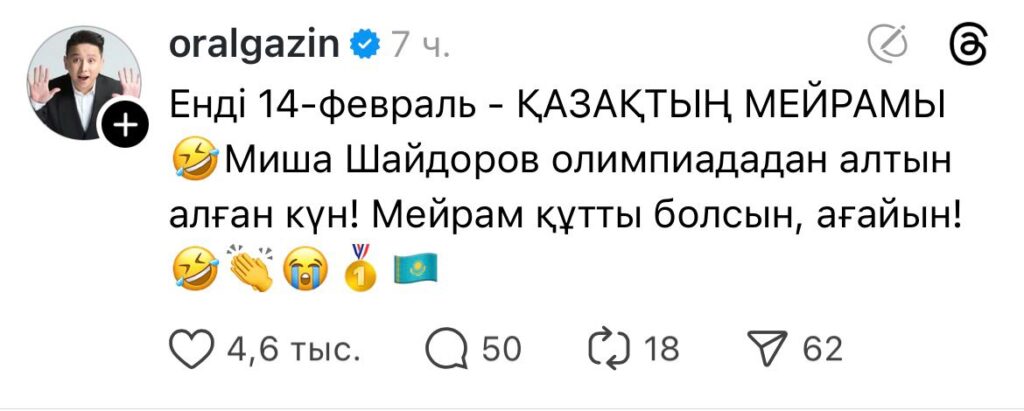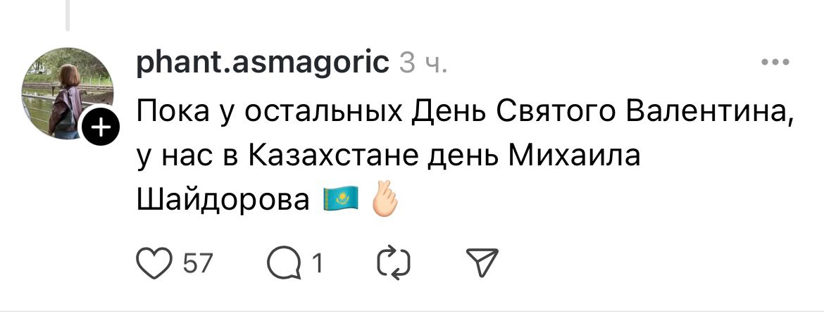 Көпшілігі 14 ақпандағы Әулие Валентин мерекесі емес, Михаил Шайдоров күні деп жазады.