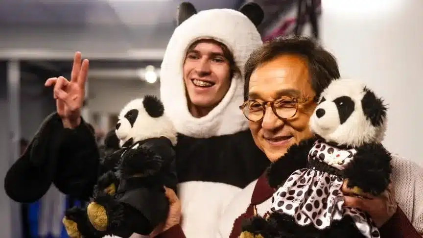 Әлемге танымал актер Джеки Чан қолына ойыншық панда ұстап шығып, Михаил Шайдоровты құттықтап, қазақстандық спортшыны таңырқатты.
