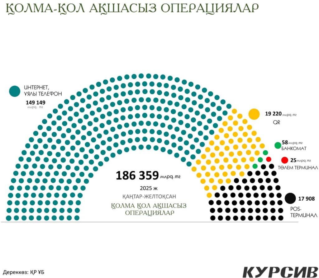 2025 жылдың қорытындысы бойынша (қаңтар-желтоқсан), қолма-қол ақшасыз операциялардың жалпы көлемі ақылға сыйымсыз 186 359 млрд теңгені құрады. Бұл қаражат қалай бөлінді?
