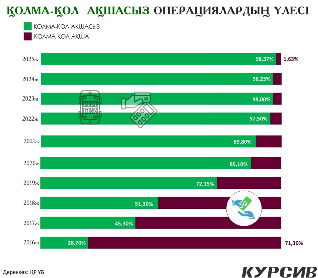 Қазақстандықтар цифрлы трансформацияны өте тез қабылдады. 2016 жылғы 28%-дан 2025 жылғы 98%-ға дейінгі секіріс – бұл тек технологияның жетістігі емес, халықтың банк жүйесіне деген сенімінің және ыңғайлылықты таңдауының белгісі. Ендігі кезекте «қолма-қол ақша» тек коллекциялық жәдігер немесе алыс ауылдардағы сирек құбылыс болып қалатын түрі бар.