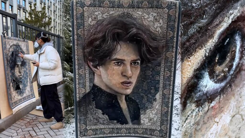 Суретші Assolyaa Михаил Шайдоровтың бейнесін кілемге түсірді