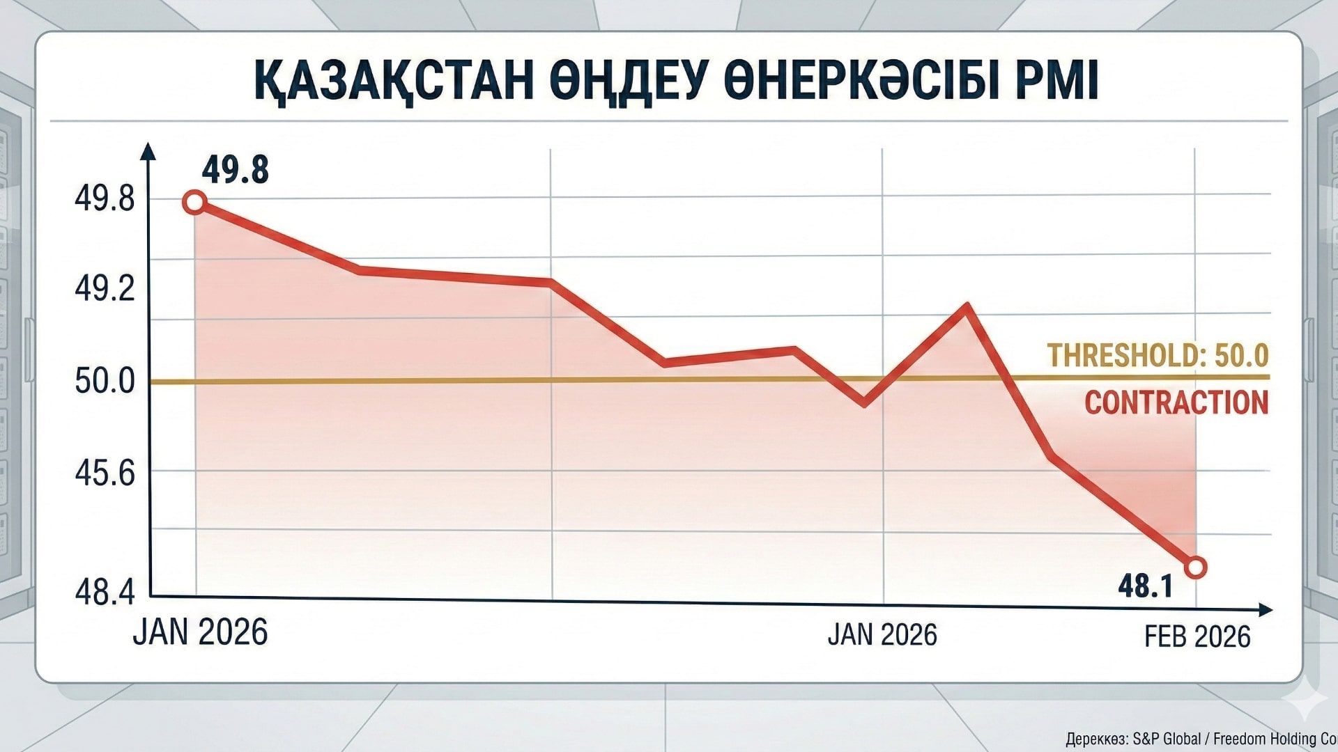 «РМІ индексінің екі ай қатарынан төмендеп, 48,1 тармаққа жетуі ішкі сұраныстың әлсіреуін де, жоғары салықтық қысым жағдайында операциялық маржаны сақтап қалуға бағытталған мәжбүрлі стратегияны да көрсетеді», – деп түсіндіреді сарапшы.
