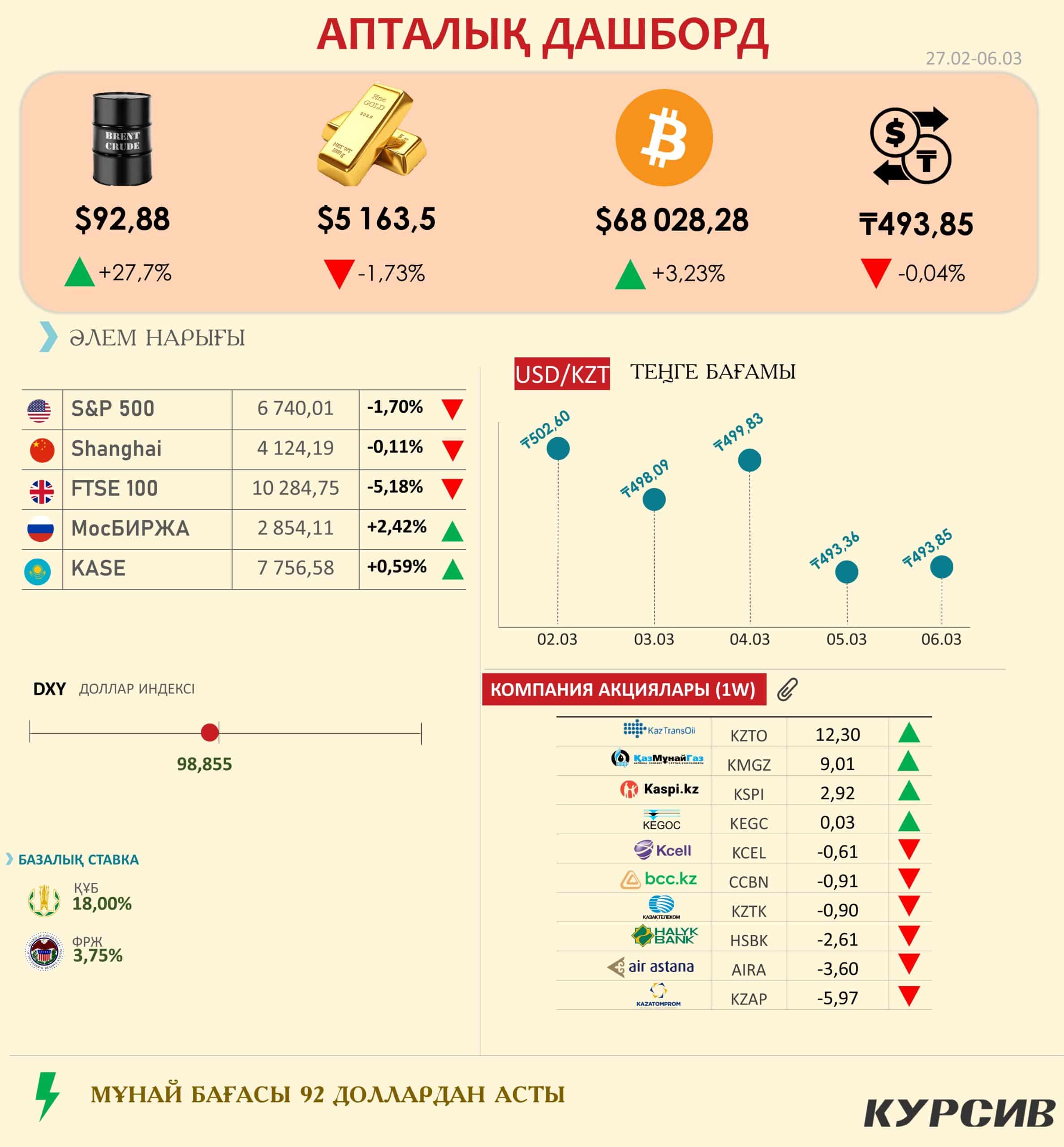Өткен апта қаржы нарығы үшін нағыз «адреналинге» толы болды. Геосаяси шиеленіс пен энергия тасымалдаушылардың қымбаттауы инвесторларды сақтыққа итермелеп отыр. Kursiv Media наурыз айының алғашқы аптасын қорытындылады.