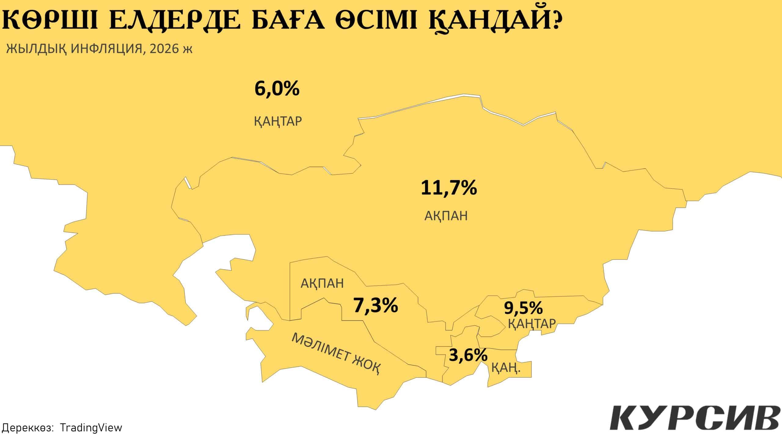 2026 жылғы ақпанда инфляция 11,7%-ға дейін төмендеген. Алайда бұл көрші елдермен салыстырғанда ең жоғары. Қазақстан үшін 2026 жылға арналған болжам мұнай бағасының жоғары болуына байланысты қайта қаралды. Бүгінде инфляция нысанасы 9,5-11,5% аралығында межеленіп отыр. Бұл көршілес елдермен салыстырғанда айтарлықтай жоғары көрсеткіш.