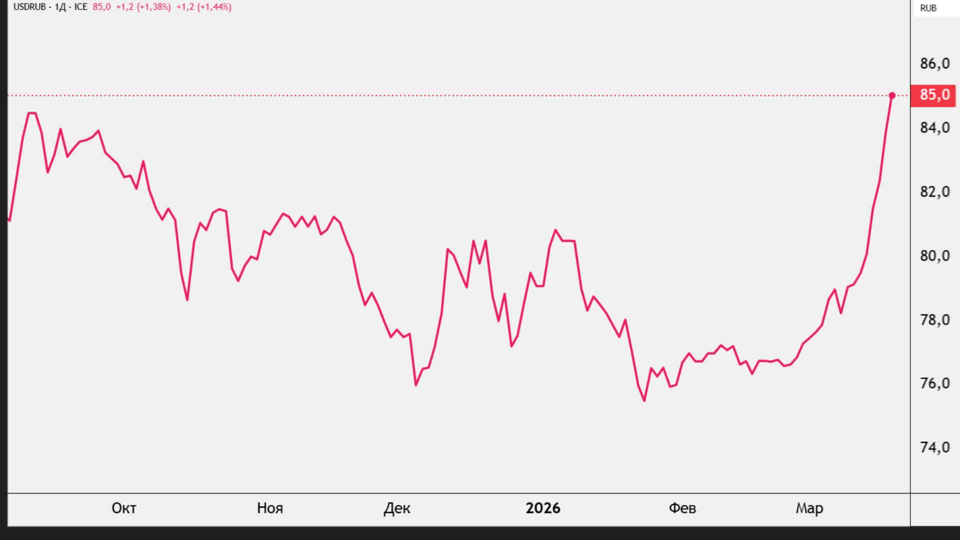 Соңғы күндері Ресей валюта нарығында айтарлықтай өзгерістер байқалып жатыр. 18 наурыздағы кешкі сауда-саттық рубльдің бірқалыпты әлсіреуінен нақты құлдырауға ұласты. Астана уақытымен бүгін сағат 13:55-тегі жағдай бойынша USD/RUB бағамы 86,1 рубльге жетті. Осылайша рубль жыл басынан бері 8,46% құнсызданды. Бұл Freedom Finance Global сарапшысы Наталья Мильчакова болжаған апта соңындағы дәлізден (82–84 рубль) жоғары болып тұр. Kursiv Media көрші ел валютасы неліктен құнсызданып жатқанын саралап көрді.