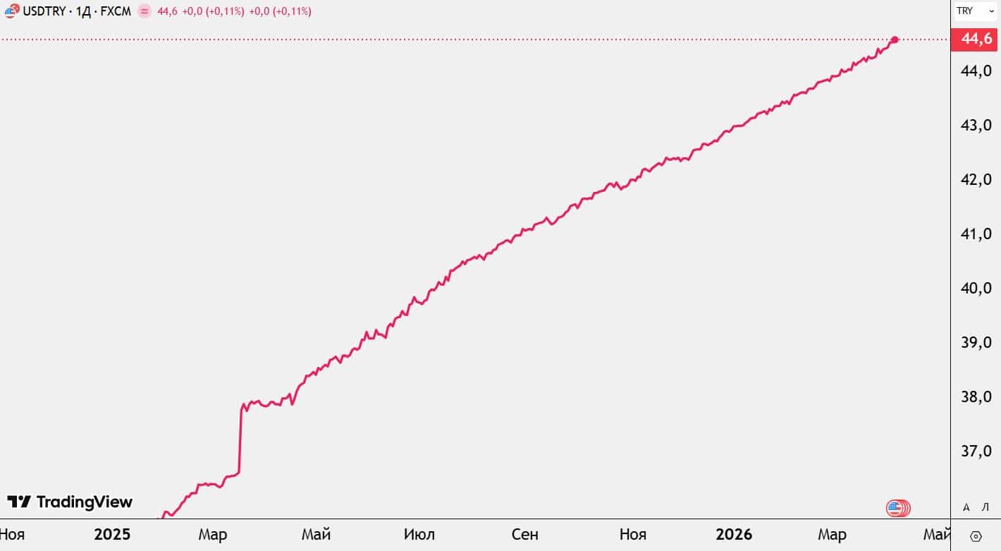 2026 жылдың сәуір айында түрік лирасы тағы да қысым астында қалып, USD/TRY жұбы 44.2–44.5 диапазонында саудаланып жатыр. Бұл валюта жұбы өзінің тарихи ең жоғарғы көрсеткіштеріне жақын тұр. Лираның мұндай күйзеліске ұшырауына не себеп және алдағы уақытта жағдай өзгере ме? Талдап көрейік.