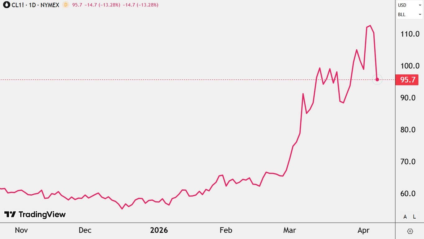 Brent маркалы мұнайдың бағасы 16%-ға дейін арзандап, барреліне 95 доллар шамасында саудаланды, ал West Texas Intermediate (WTI) соңғы алты жылдағы ірі құлдырауды көрсетіп, 96 доллар төңірегінде тұрақтады.