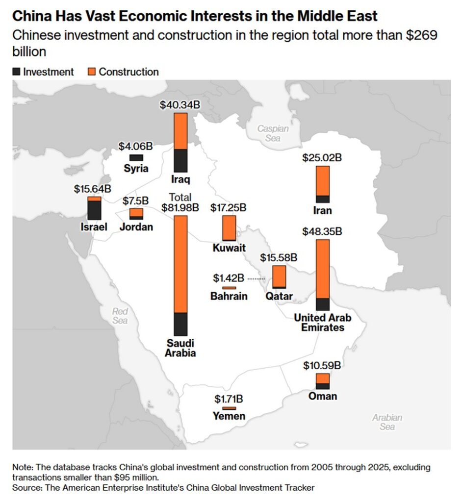 Қытай Иранның негізгі одақтасы саналғанымен, қазір басты назары мен капиталын Парсы шығанағы елдеріне бұрды. Араб мемлекеттері қазба байлықтан бас тартып, «жасыл» технология мен туризмге бет бұрған тұста, Бейжің бұл мүмкіндікті тиімді пайдаланды.