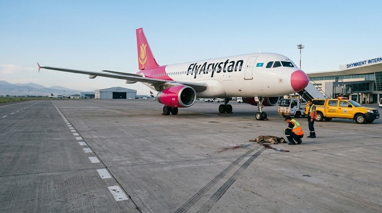 Шымкент әуежайының ұшу-қону жолағында оқыс оқиға болды. Алматыдан ұшып келген FlyArystan авиакомпаниясының лайнері қонғанда итті қағып кеткен.