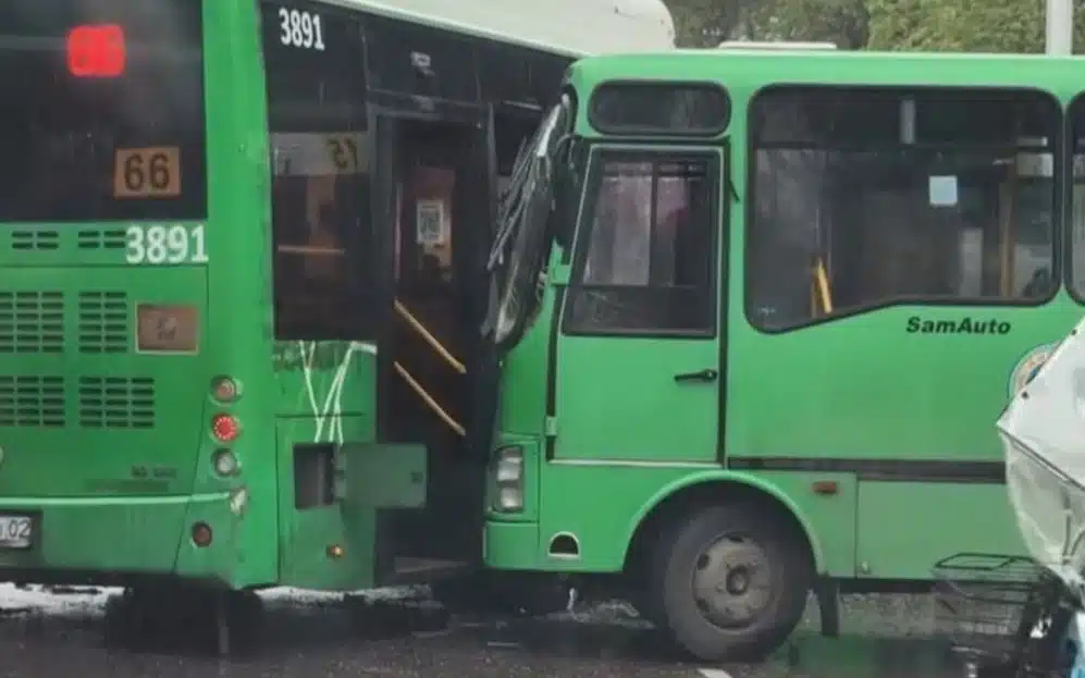 Алматыда екі автобус соқтығысты: зардап шеккендер бар / Фото: Видеодан кадр