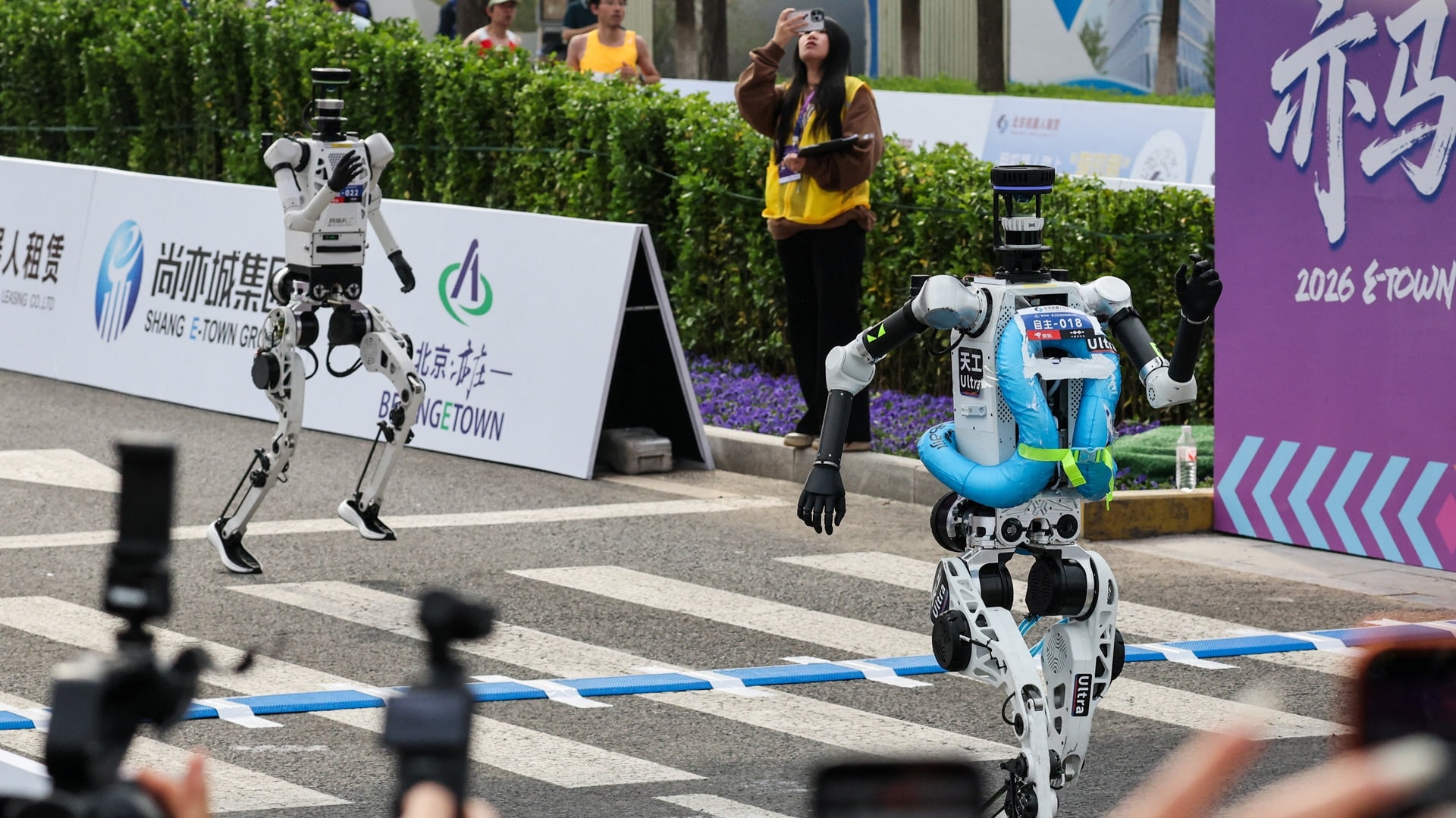 2025 жылы марафонға 20 робот қатысса, биыл олардың саны жүзден асып кетті. Олар адамдардан айтарлықтай жылдам жүгірді. Роботтар мен адамдар соқтығыспас үшін екі түрлі жол таңдалды.
