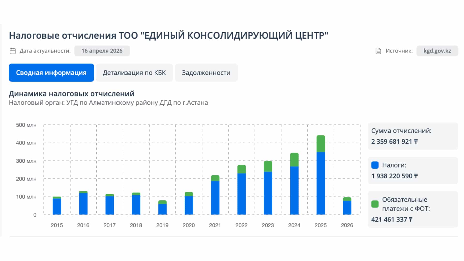 Adata-дан тексерсек, кәсіпорын құрылтайшысы ретінде Зәкіржан Кузиев көрсетілген. 2015 жылдан бері бюджетке 2,3 млрд теңге салық төлеген. Осы уақытқа дейін 450 рет мемлекеттік сатып алуға қатысқан. Келісімшарттың жалпы құны – 1,3 млрд теңге.