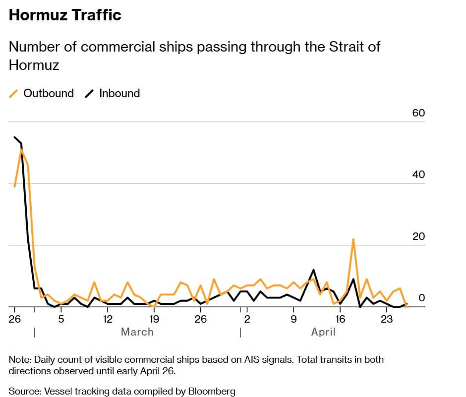 Соңғы аптада болған қақтығыстардан кейін бұл маңызды су жолы қаңырап бос қалды. Bloomberg мәліметтеріне сүйенсек, бұғаздан тек саусақпен санарлық кішкентай жүк кемелері мен бірді-екілі танкер көрінгенімен, негізгі сауда ағыны мүлдем тоқырап қалған.