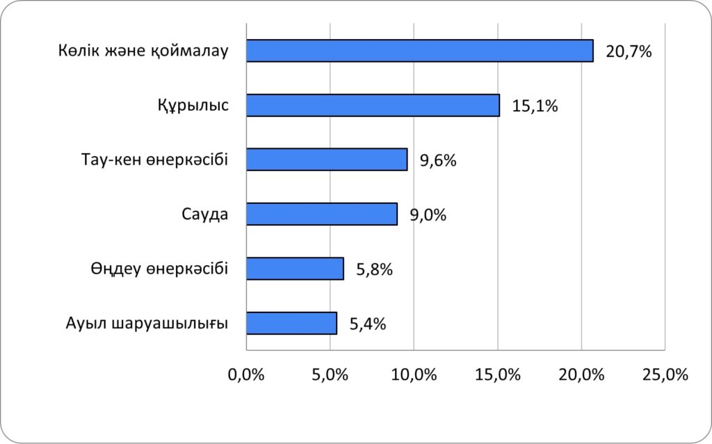 Егер салалар бойынша статистикаға қарайтын болсақ, онда экономиканың өсуі мұнай салаларынан басқа салалармен қамтамасыз етілетінін көруге болады. Мысалы, 2025 жылғы 10 айда көлік саласы жылына 21%-ға, құрылыс 15,1%-ға, ал сауда 9%-ға өсті. Тауарлар өндірісі жылдам өсуде – ж/ж 8,2%-ға, ал қызметтер 5,3%-ға артты.