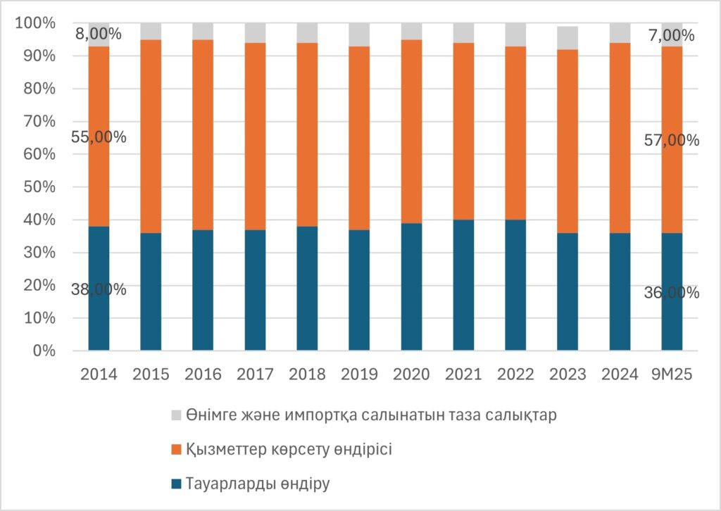 Қазақстанның ІЖӨ құрылымының 2014 – 2025 жылдардағы 9 айдағы серпіні, %