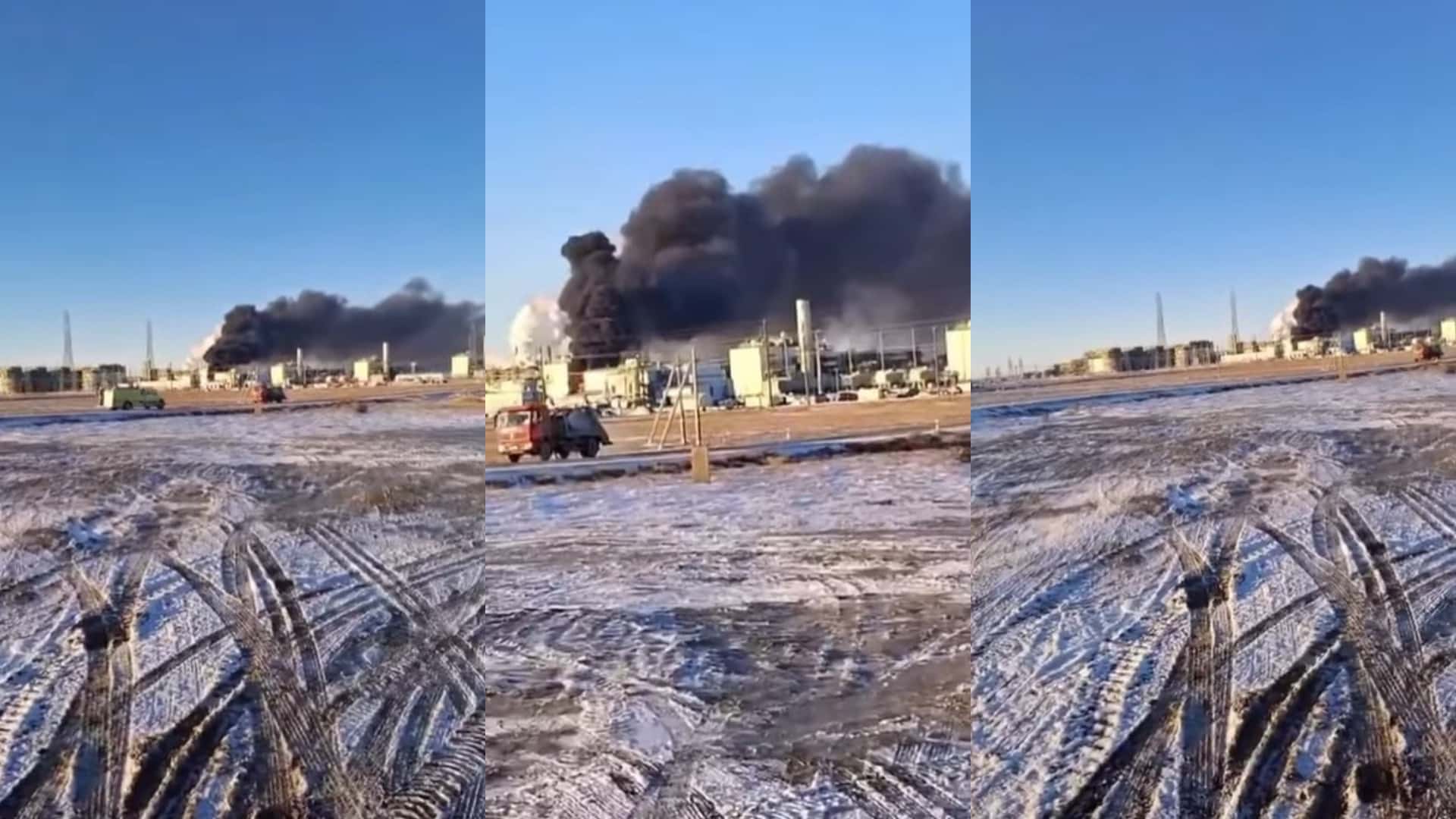 19 Қазан 2025 Азамат Серікхан Дрон шабуылынан кейін Қазақстан газы өңделетін Орынбор зауытында өрт шықты