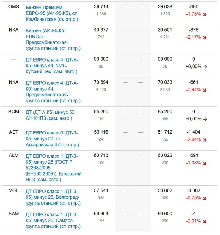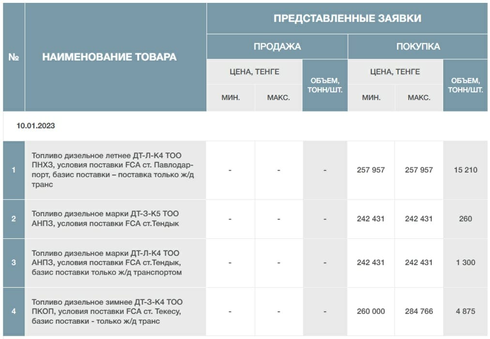 Для понимания проблемы импорта ДТ можно кратко пробежаться по биржевым индикаторам России и Казахстана. Это официальная информация по «свежим» торгам на Санкт-Петербургской международной товарно-сырьевой бирже: