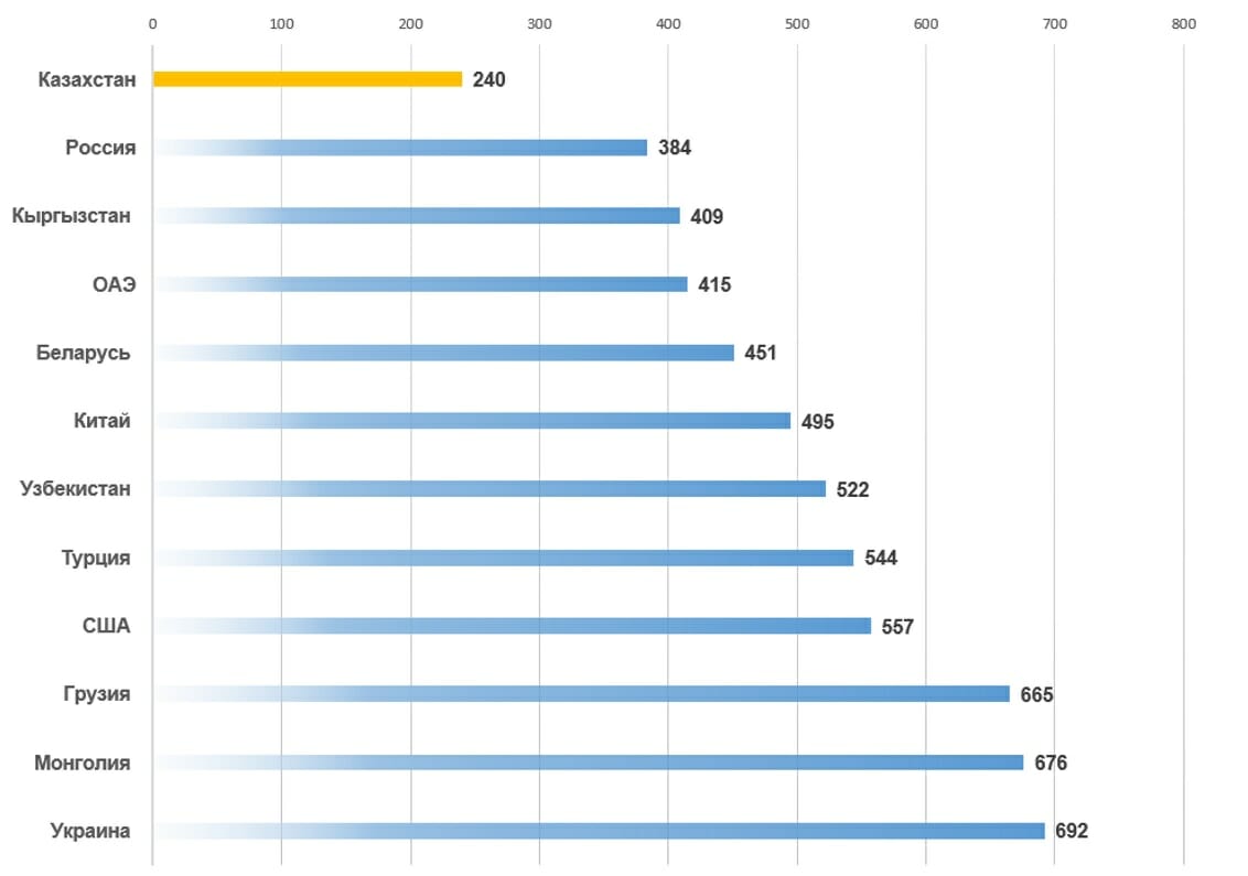 К слову, самая дорогая цена на ДТ в Исландии и Гонконге – 1064 и 1245 тенге соответственно.