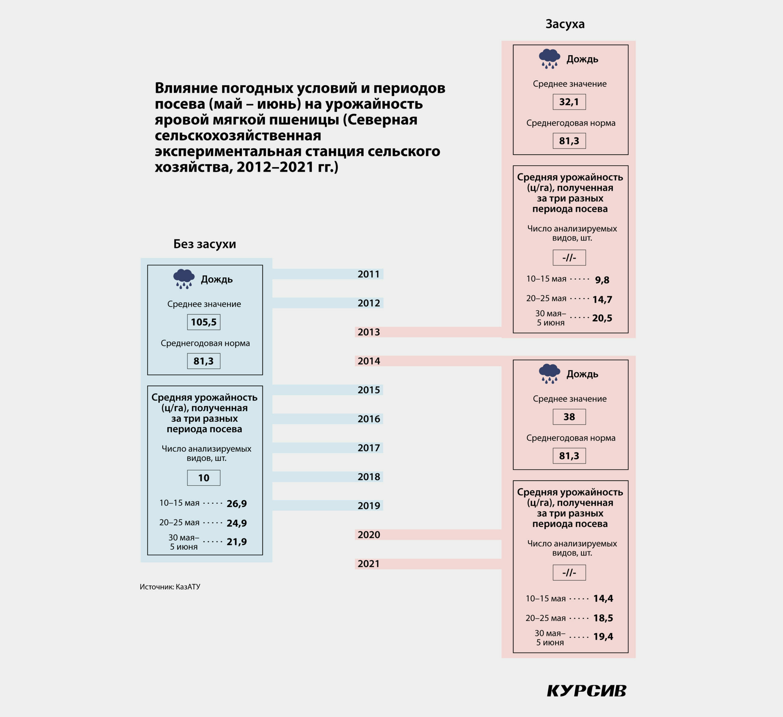 По всей видимости, звучащие в областных изданиях объяснения, касающиеся погоды, более существенны. В области третий год длится засуха, однако в 2022 году она была не такой суровой, как в предыдущие два года. В вышедшем в 2022 году исследовании «Влияние погоды на Северо-Казахстанской равнине на продуктивность весенней мягкой пшеницы» (Influence of the North Kazakhstan Plains Weather on the Productivity of the Spring Soft Wheat), проведенном экспертами Северо-Казахстанской сельскохозяйственной опытной станции и Казахского агротехнического университета имени С. Сейфуллина, подтверждено, что разница в уровне осадков между годами может привести к изменению урожайности на 10 и более центнеров с гектара.
