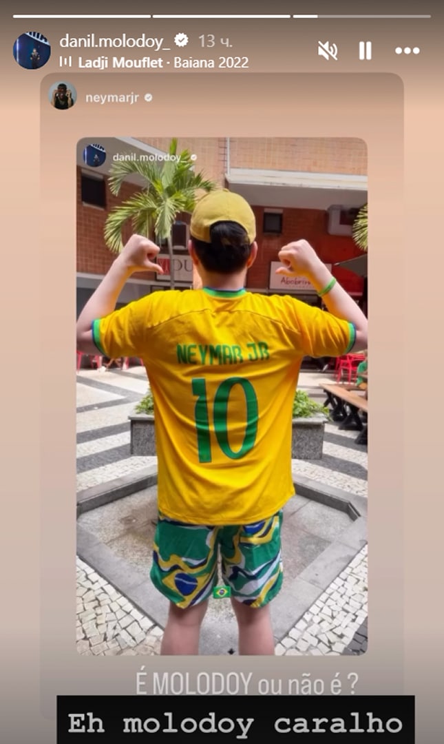 Но главный хайп еще впереди. В Stories Данила вовсю мелькают отсылки к главной звезде бразильского футбола. Киберспортсмен примерил легендарную желтую «десятку» с именем Неймара Жуниора, а сам звездный форвард сборной Бразилии даже репостнул публикацию Данила.